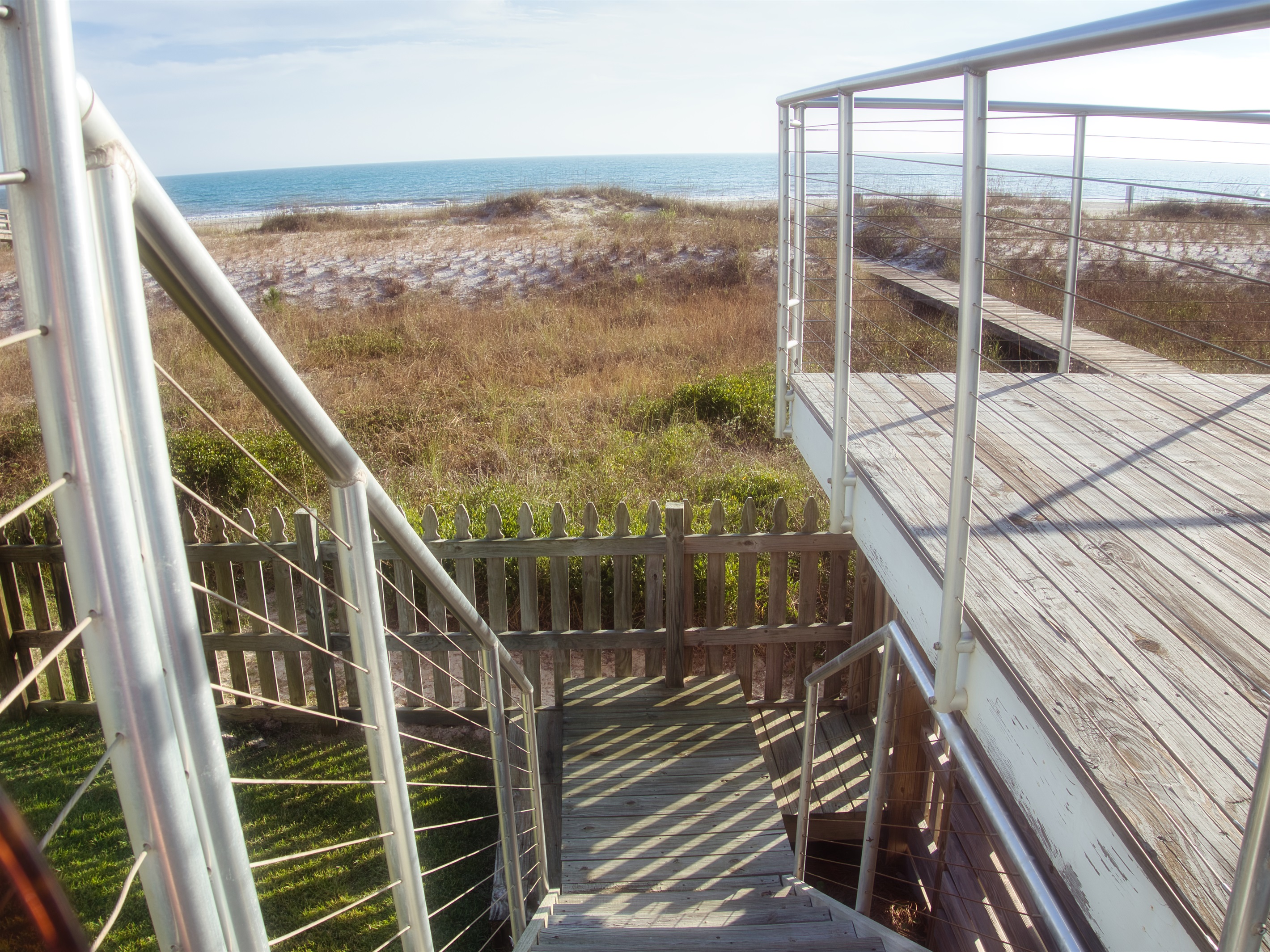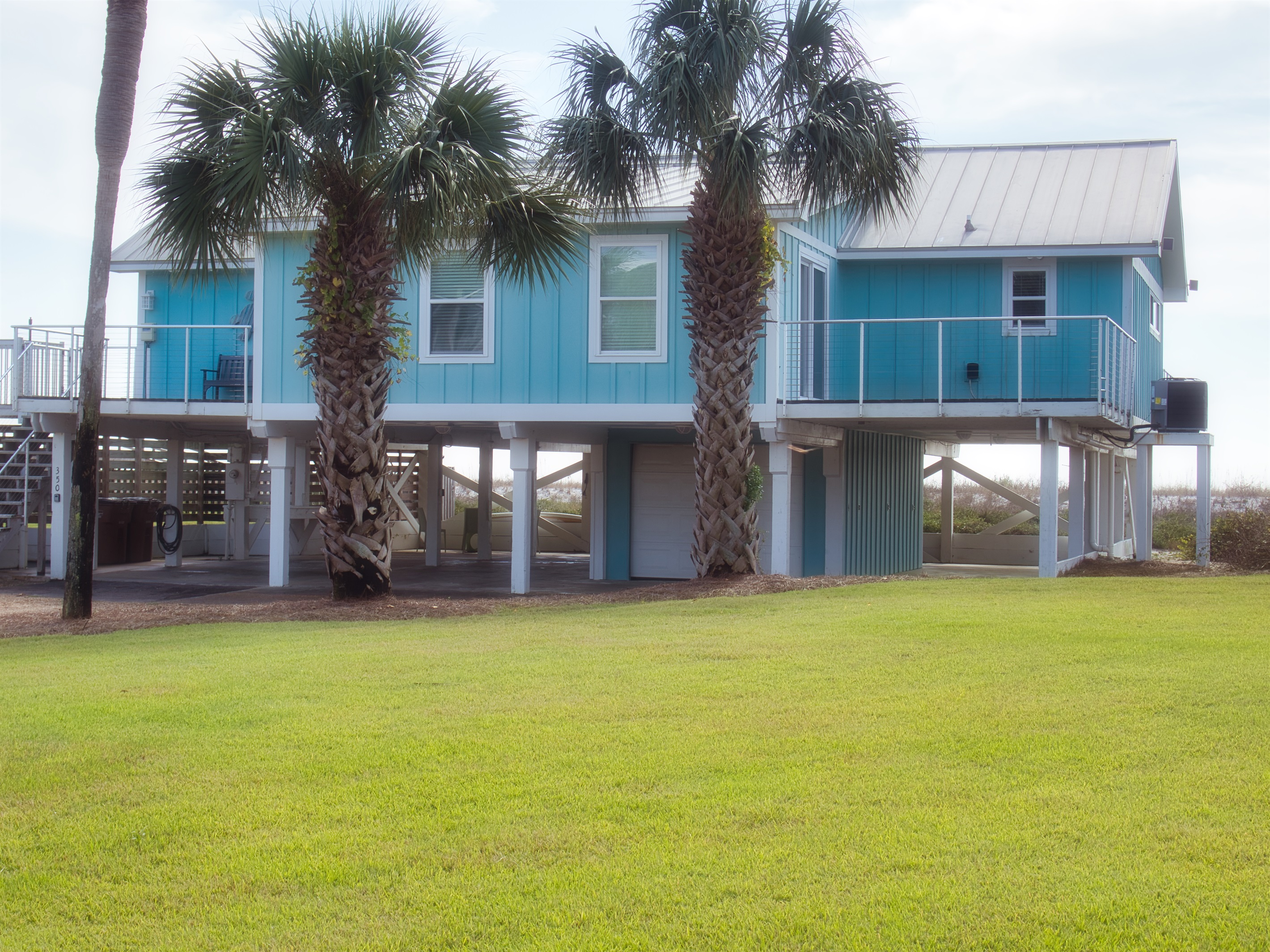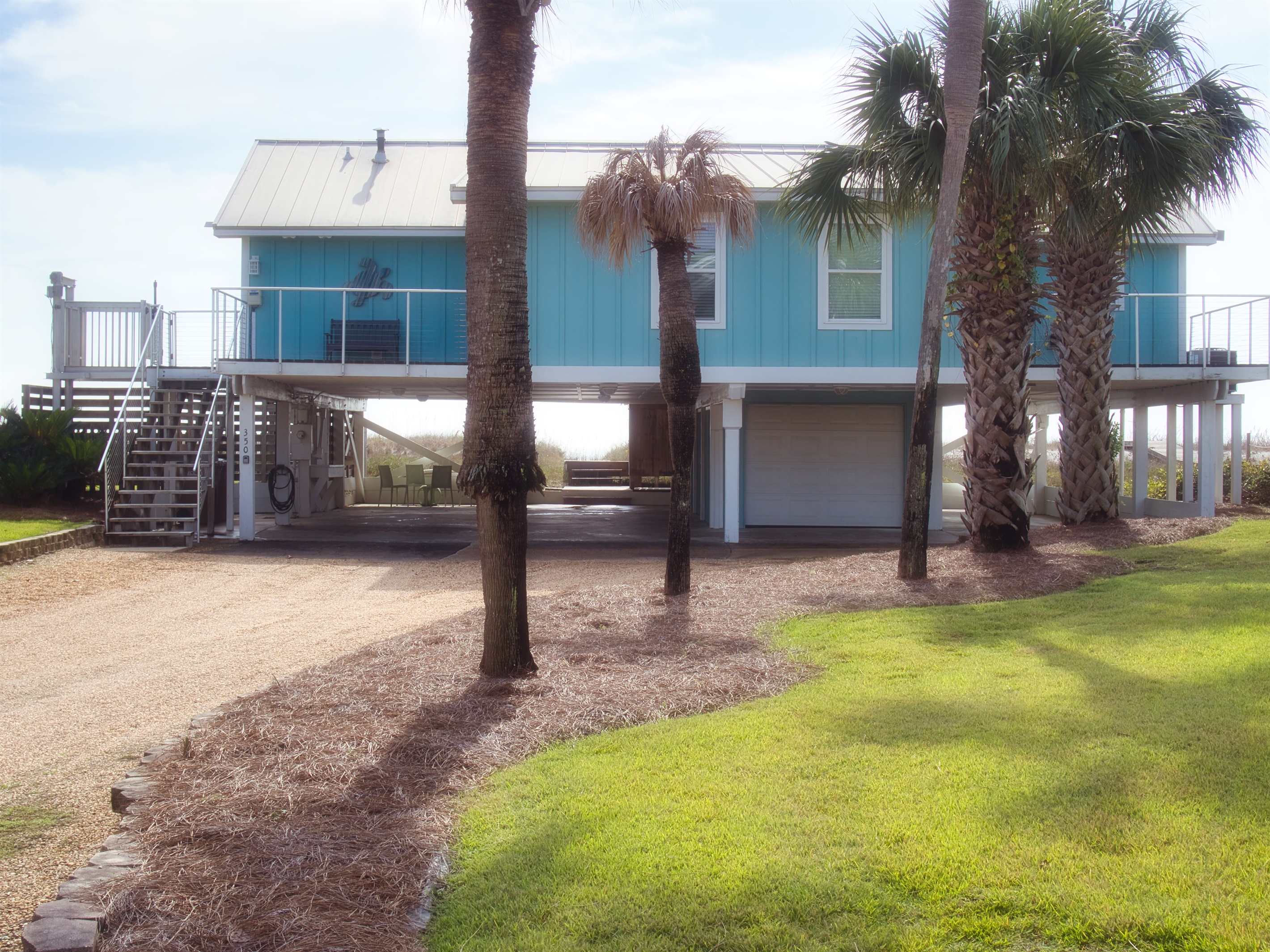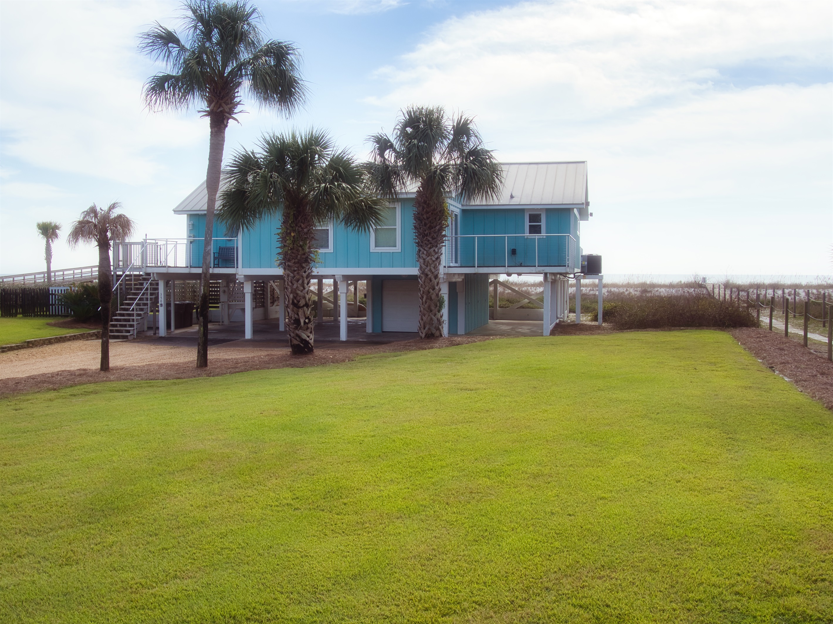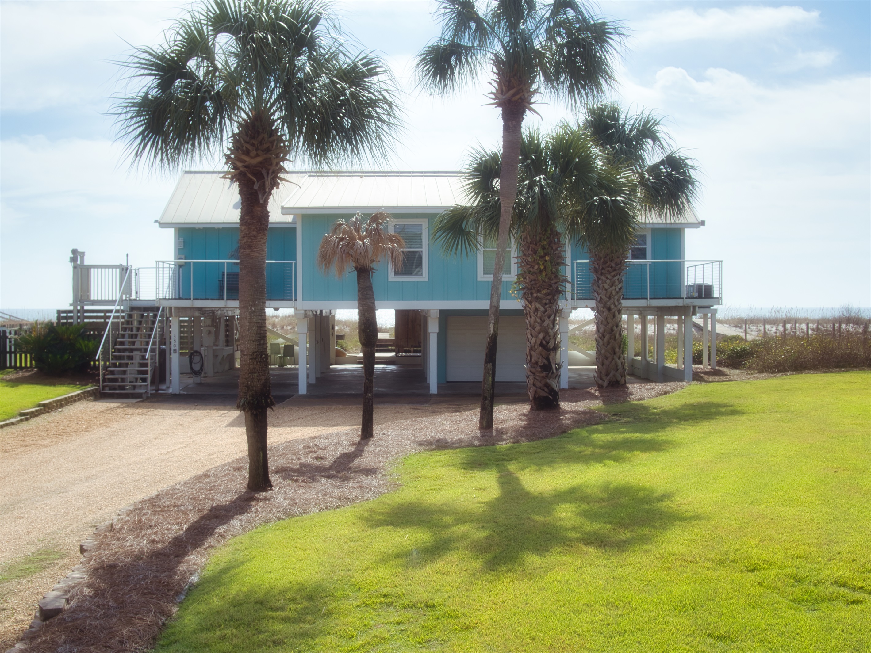 The raised, single-level home offers expansive gulf views from wrap-around decks and a convenient cargo lift to easily carry up groceries, luggage or beach gear.